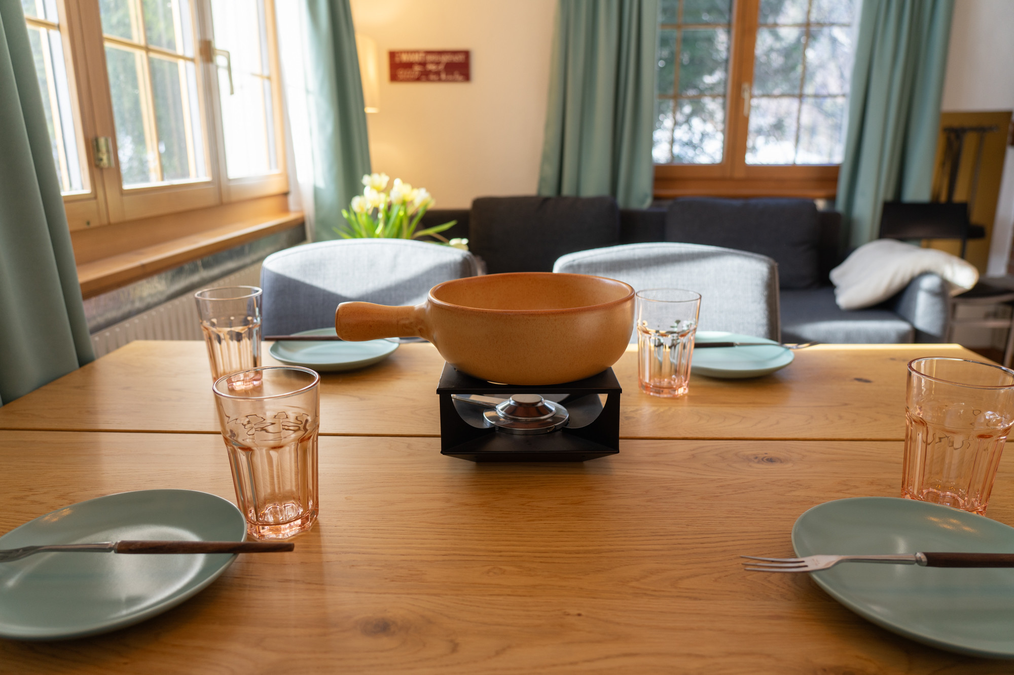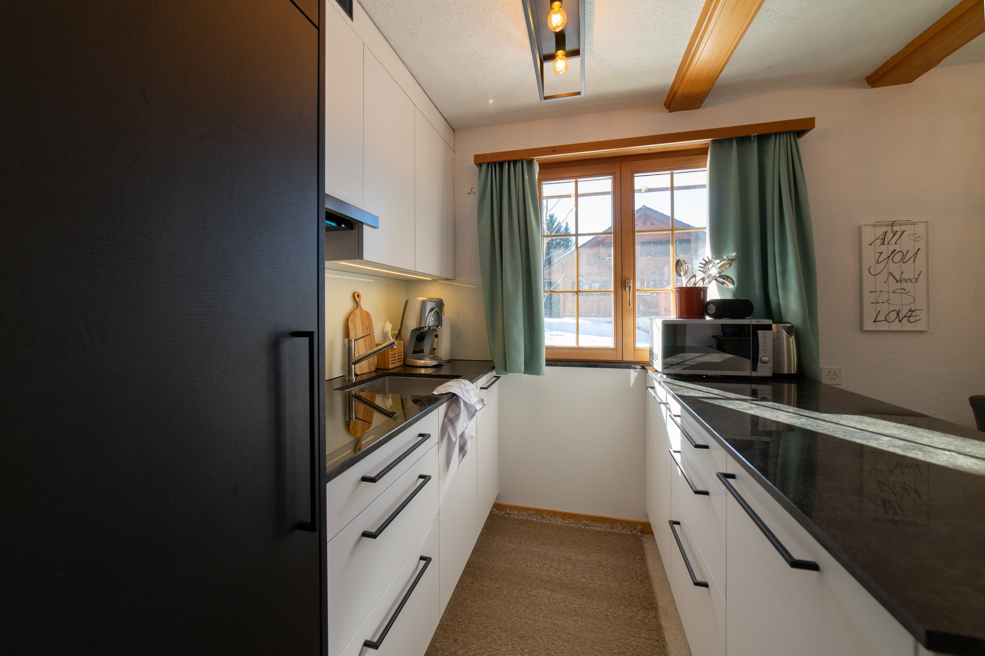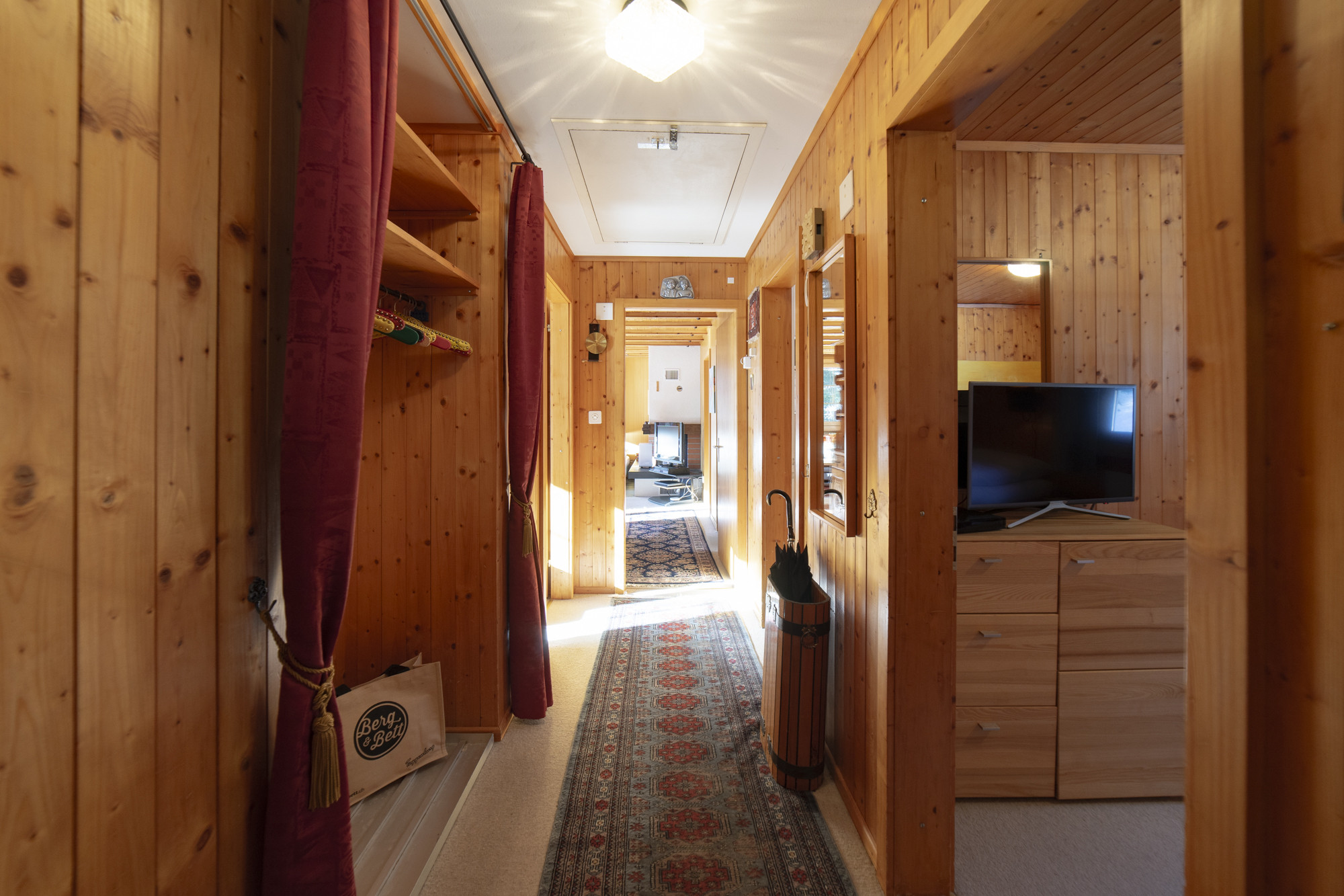 The chalet consists of two non-smoking apartments: The spacious 4.5-room apartment on the upper floor is suitable for up to six people and features three cosy bedrooms and a modern bathroom with a bathtub. The large, well-equipped kitchen offers everything you need for shared cooking moments: glass ceramic hob, oven, dishwasher, raclette device, fondue dishes and a coffee machine. WiFi, two televisions and a fireplace provide entertainment and cosiness.