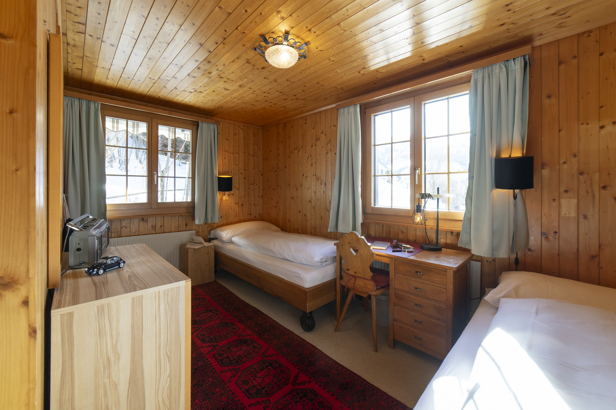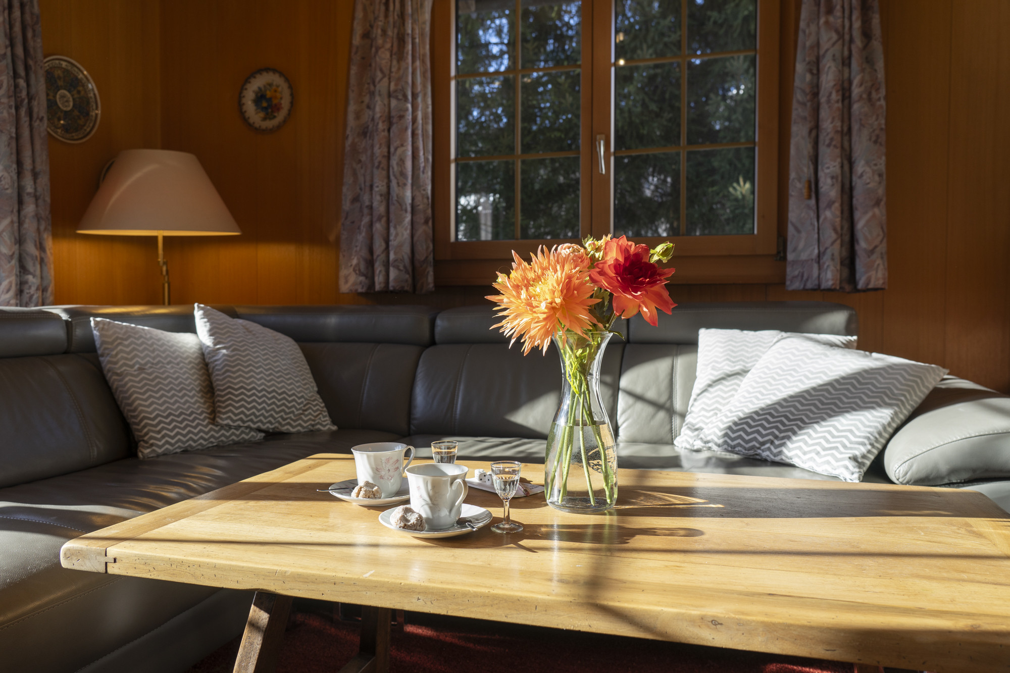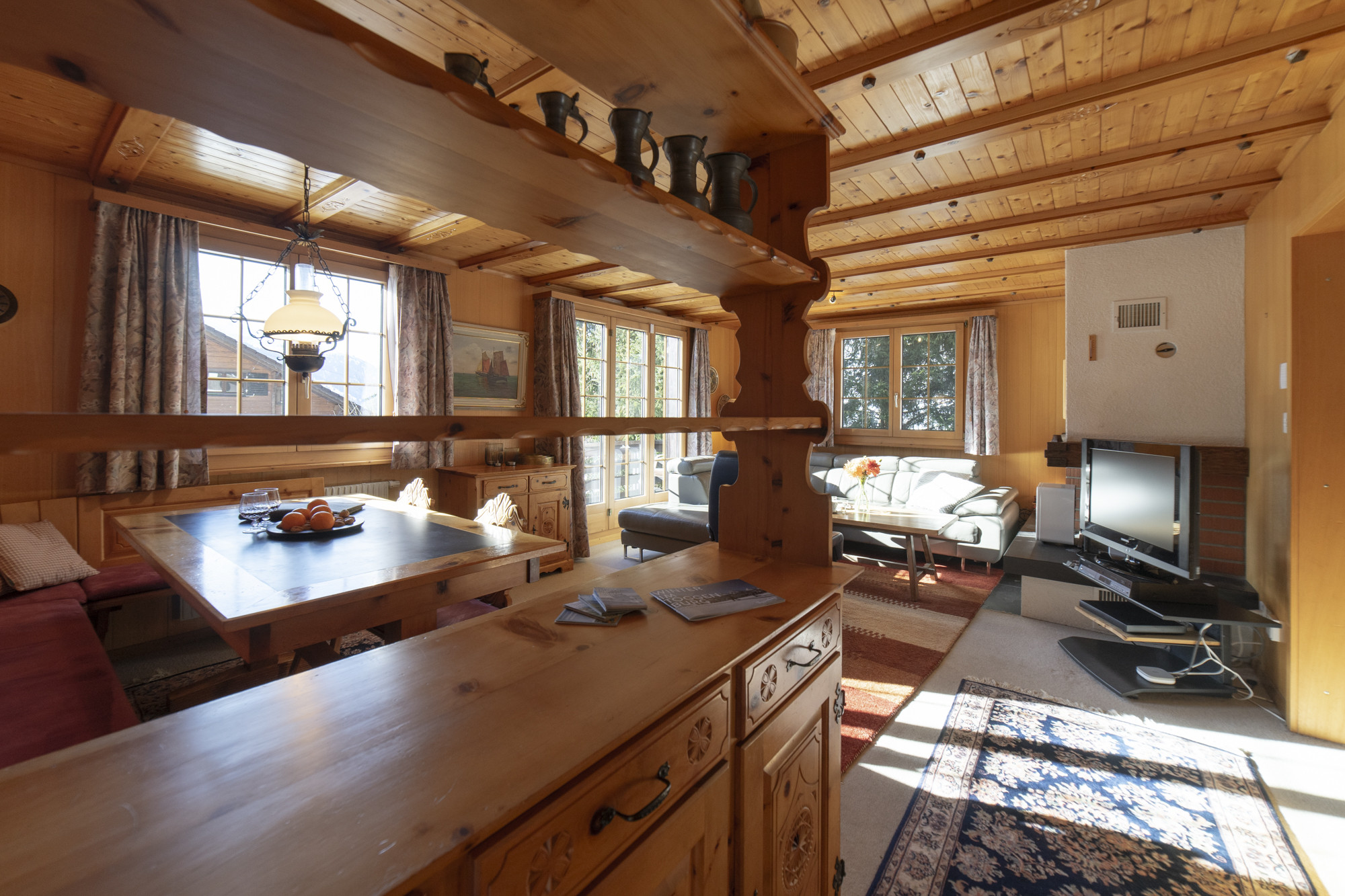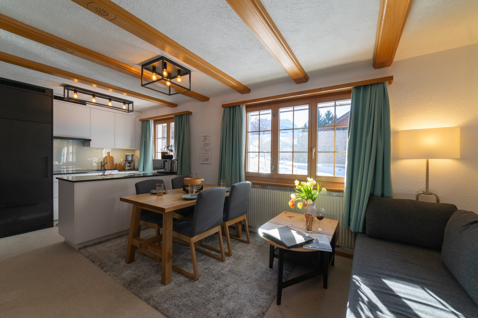 Le chalet est composé de deux appartements non-fumeurs : Le spacieux appartement de 4,5 pièces à l'étage est adapté à jusqu'à six personnes et dispose de trois chambres confortables ainsi qu'une salle de bain moderne avec baignoire. La grande cuisine bien équipée offre tout ce dont vous avez besoin pour des moments de cuisine partagés : plaque de cuisson vitrocéramique, four, lave-vaisselle, appareil à raclette, service à fondue ainsi qu'une machine à café. Le WiFi, deux téléviseurs et une cheminée assurent le divertissement et le confort.