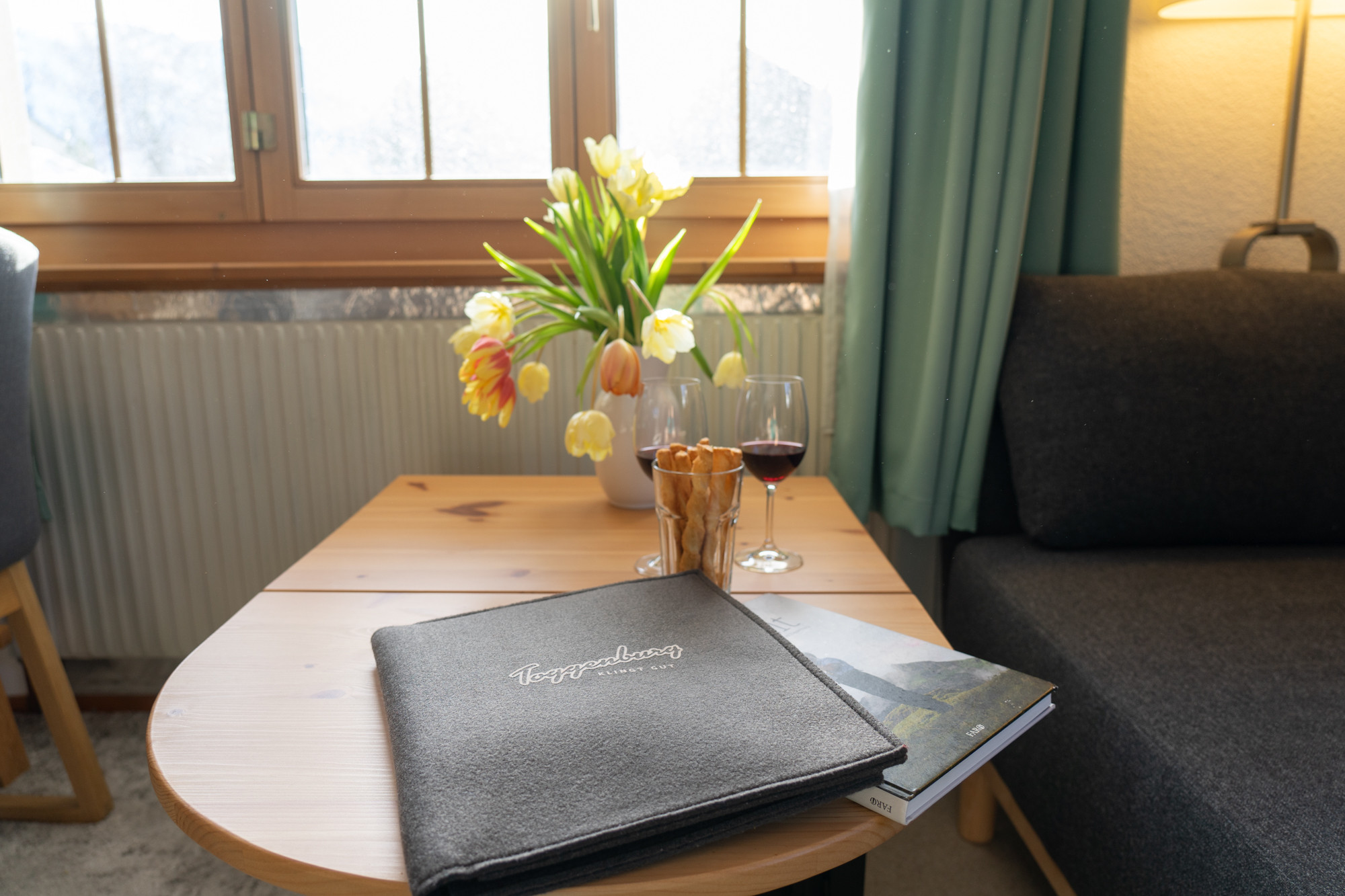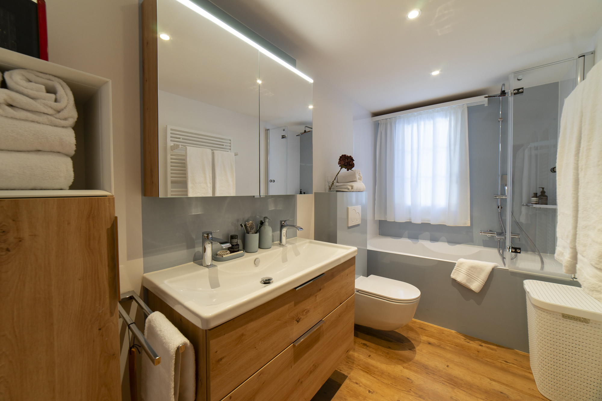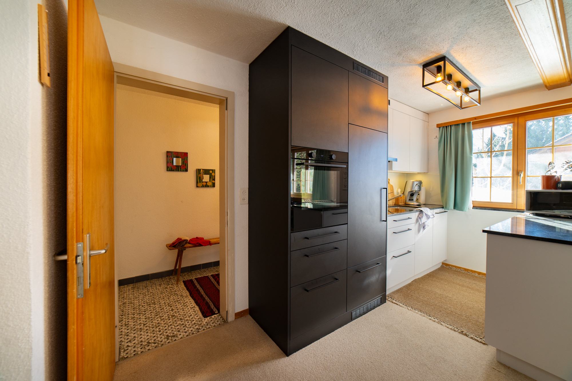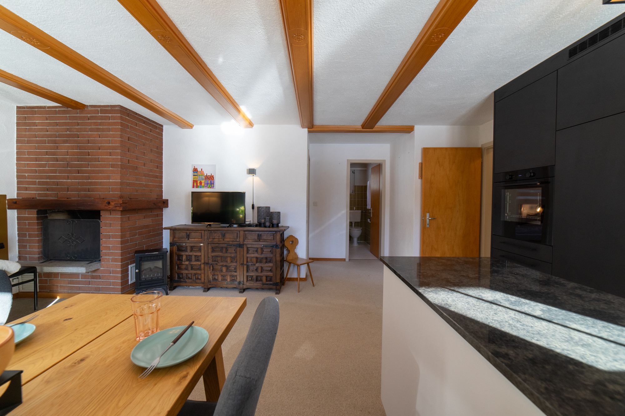 Le chalet est composé de deux appartements non-fumeurs : Le spacieux appartement de 4,5 pièces à l'étage est adapté à jusqu'à six personnes et dispose de trois chambres confortables ainsi qu'une salle de bain moderne avec baignoire. La grande cuisine bien équipée offre tout ce dont vous avez besoin pour des moments de cuisine partagés : plaque de cuisson vitrocéramique, four, lave-vaisselle, appareil à raclette, service à fondue ainsi qu'une machine à café. Le WiFi, deux téléviseurs et une cheminée assurent le divertissement et le confort.