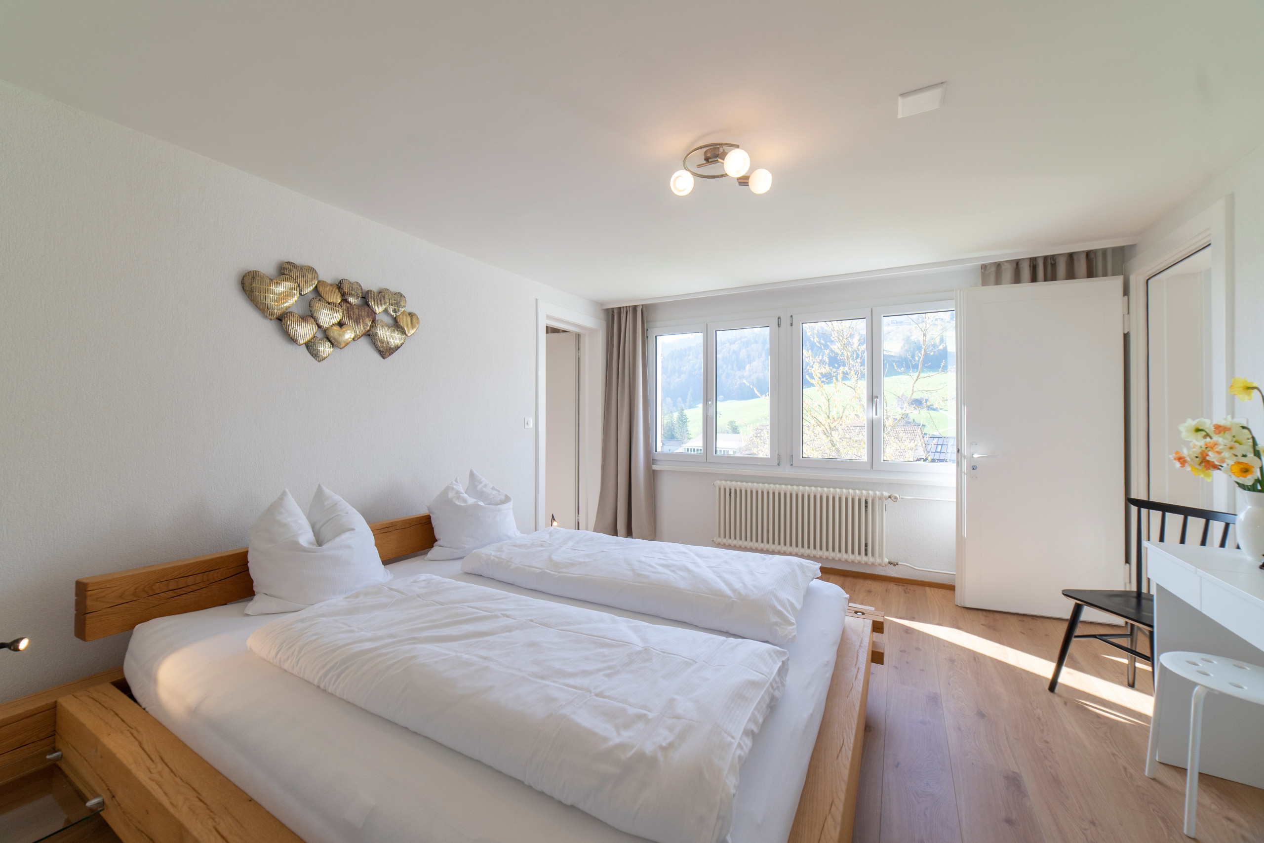 Die Ferienwohnung Bella Vista ist ein gemütlicher Rückzugsort in Wildhaus. Die frisch renovierte und liebevoll eingerichtete 2-Zimmer-Ferienwohnung liegt im ruhigen Quartier Riethalden am östlichen Dorfrand von Wildhaus. Sie befindet sich in einem Mehrfamilienhaus und bietet auf 65 m² Platz für bis zu 4 Personen. Damit ist sie ideal für Familien und Paare, die Ruhe und Natur geniessen möchten.